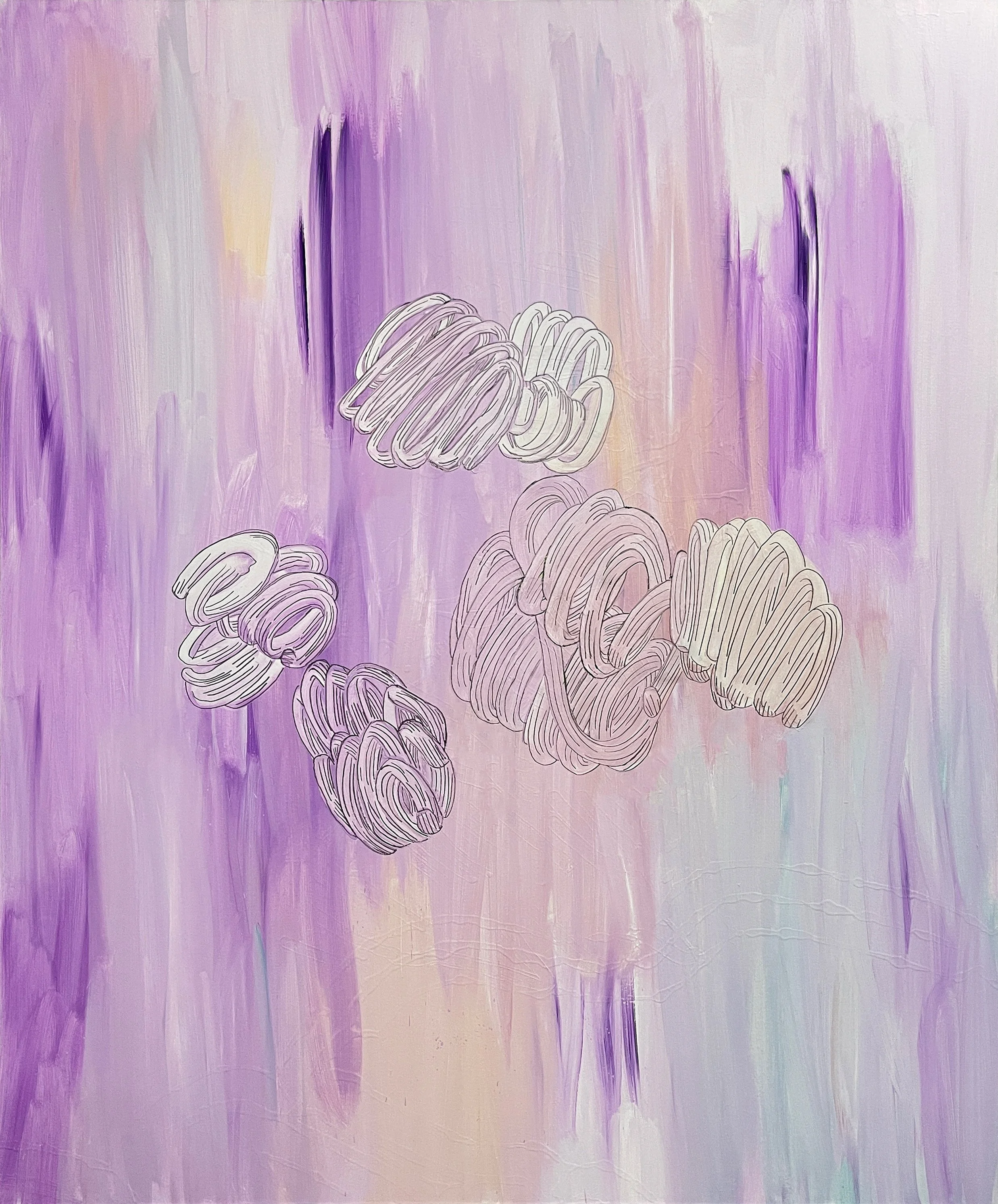 Mmnh. 2024, Acrylic and coloured pencil on canvas, 120 x 100 cm